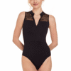 Amelia – Turtleneck Stretch Lace Leotard with Front Zip - 31626