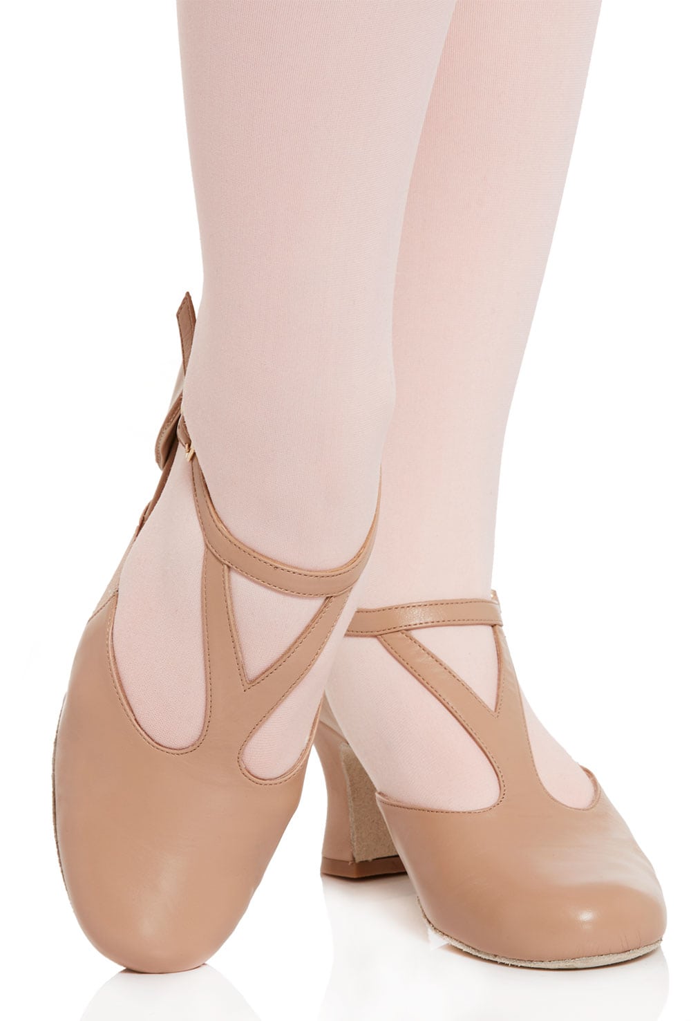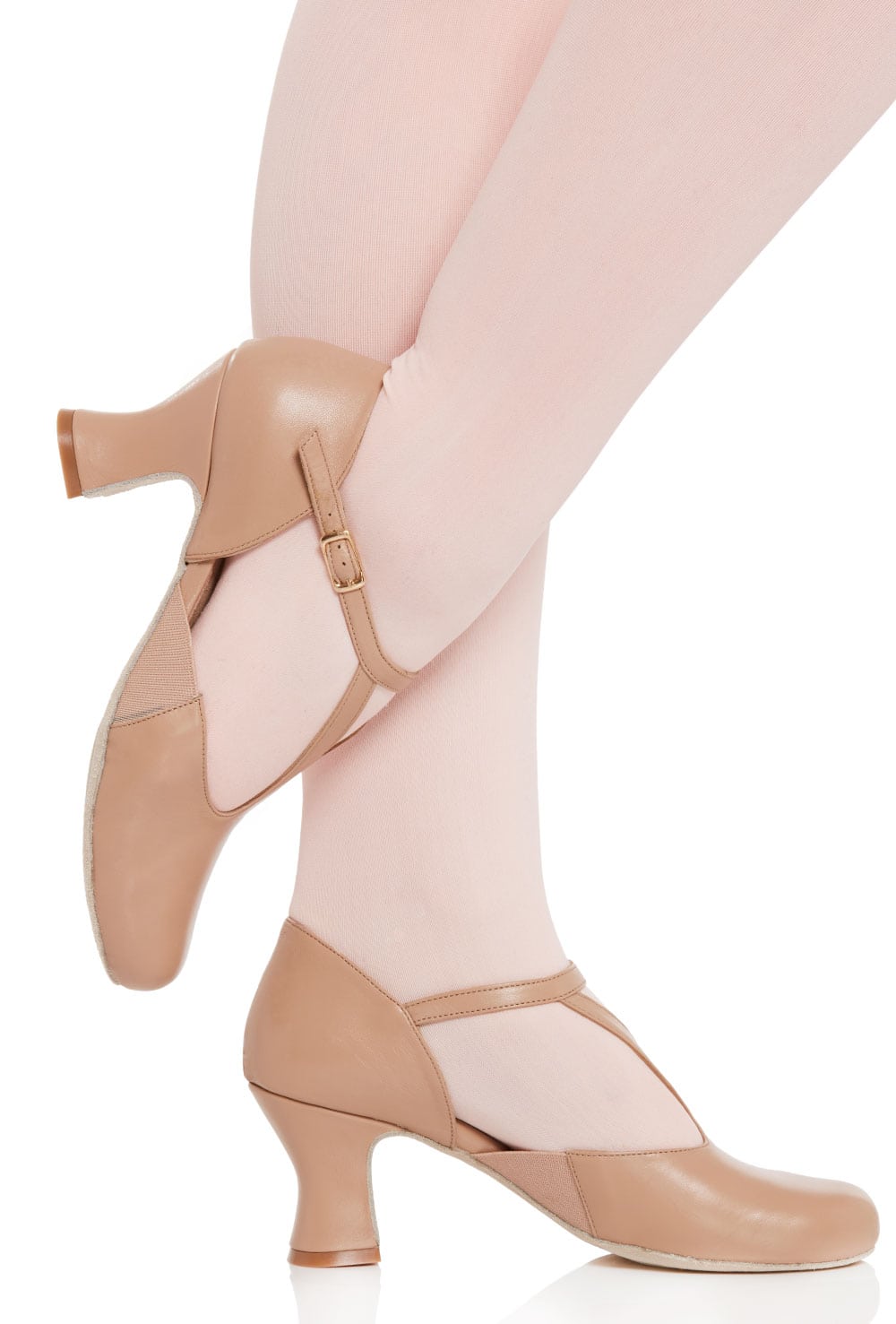 Luxury leather Y-bar dance shoe with non-slip suede sole, elastic side inserts for freedom of movement and 2 inch clad flared stability heel.