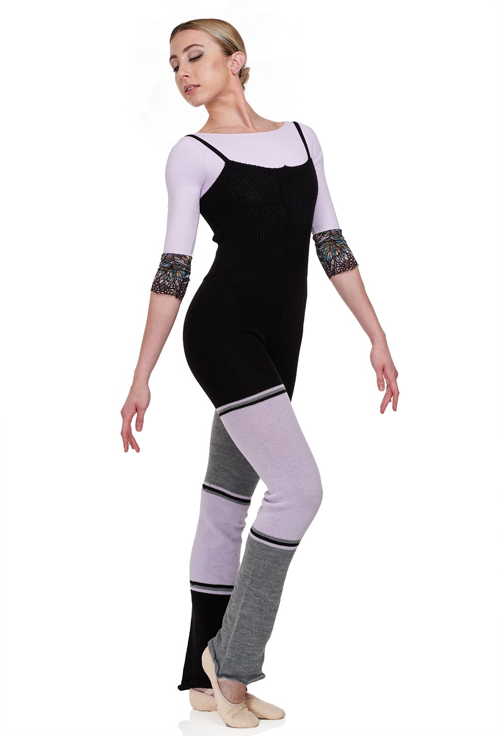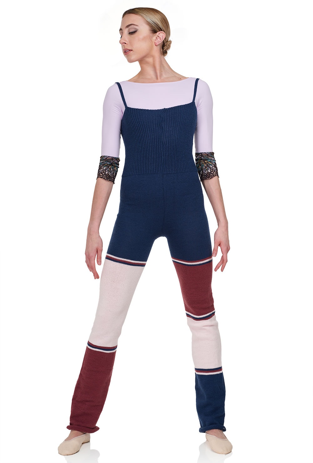 Knitted with gorgeous combinations of three colours, this fun knitted romper is a great addition to your dance kit