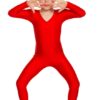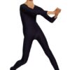 Long sleeve, shiny lycra unitard with front bust ruche and stirrup to hook under the foot. 80% nylon 20% lycra elastane.