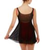 Mesh tunic with round neck, empire bust seam and flared skirt. Great for layering over leotards.
