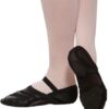 Unique shoe made with articulated leather/lycra upper and power mesh arch. Features contoured, split-sole suede patches that are cushioned for comfort and adjustable elastic straps that can be worn over the arch or behind the heel. Suitable for ballet, jazz and contempory.
