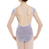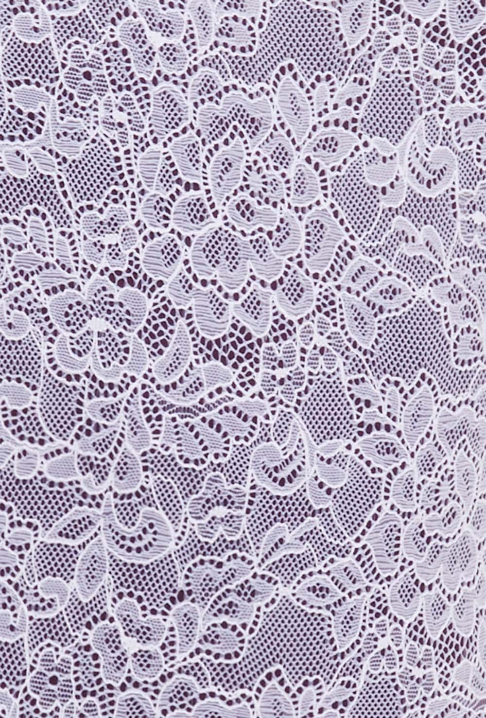 Cap sleeve, plunge back leotard with deep purple base fully overlaid with pretty white stretch lace. 90% polyamide 10% elastane.