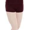 Knitted warm-up shorts with roll down high waist. 84% acrylic 16% nylon.