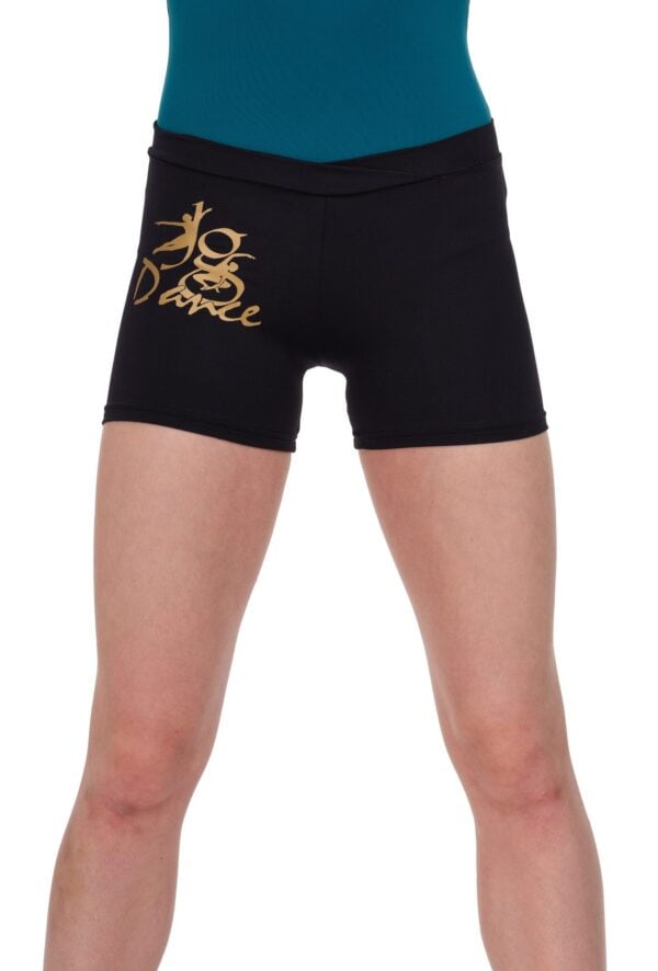 Uniform shorts for June Glennie dancers with gold school logo on the hip