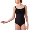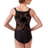 The sumptuous rose pattern stretch tulle and clean bodice lines gives this leotard a sophisticated look and a great choice for dancers who prefer more back coverage and wider straps