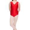 Basic shiny lycra tank leotard with front ruche. 80% nylon 20% lycra.