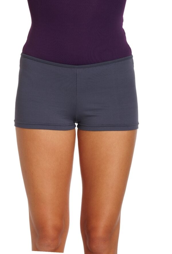 Steel grey hot pant shorts. 70% tactel 30% spandex.
