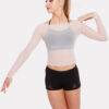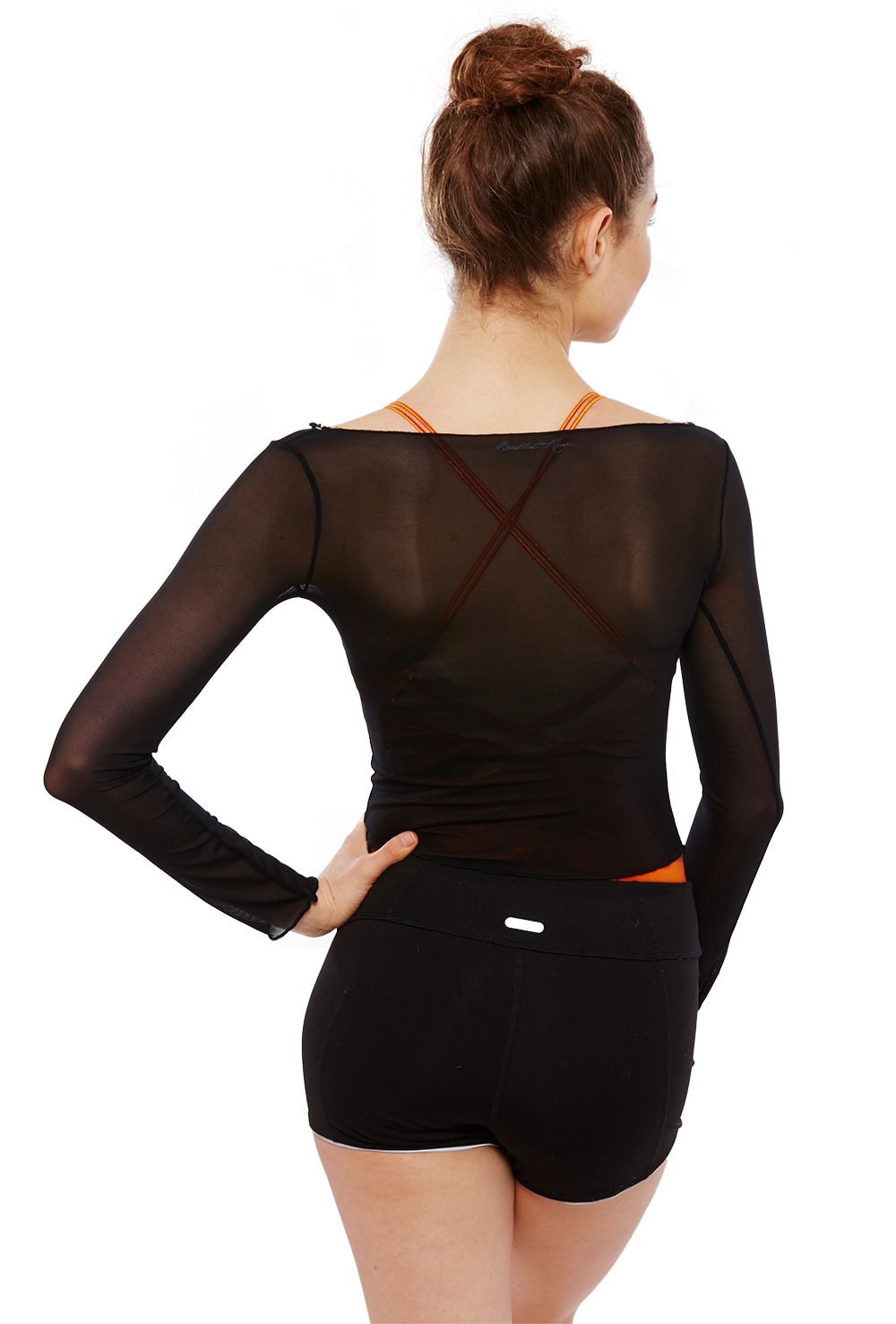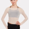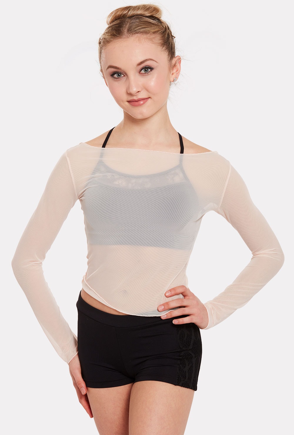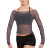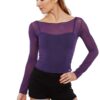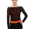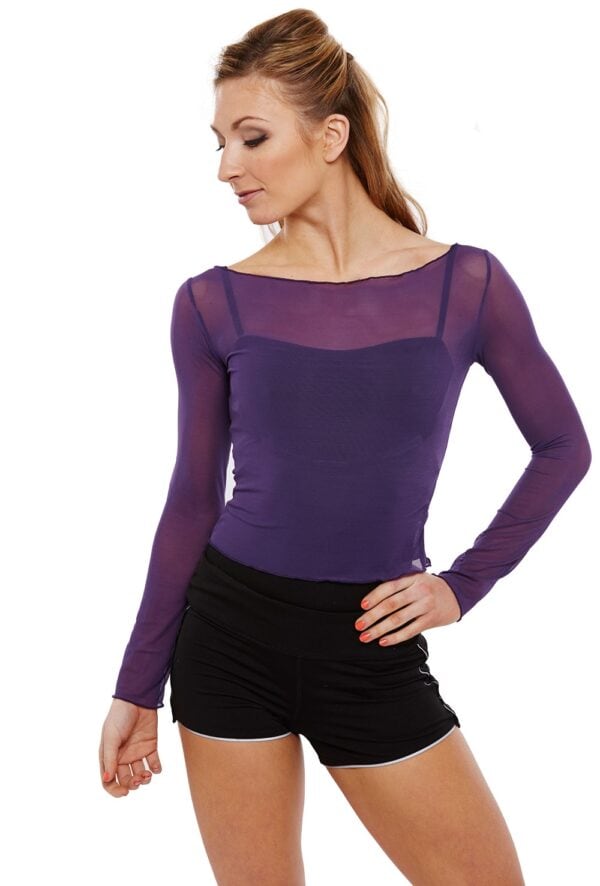 Sheer stretch mesh layering top with slash neck and long sleeves. 94% polyamide 6% elastane.