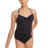 The intricate paisley print binding and straps give a pretty contrast to the plain bodice and the ruched bust gives a flattering neckline
