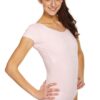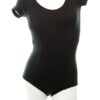 Short sleeve leotard with front princess seams. Features flattering V-neckline, low V-shaped back and full front lining. 90% cotton 10% lycra.