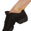Lightweight dansneaker with breathable mesh upper and suede reinforcement detailing. Features Capezio’s famous patented arch support and non-marking, 360 degree spin sole.