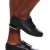 Value jazz tap shoe with matte synthetic leather upper and rubber sole. Features padded insole and comfort lining. Comes complete with toe and heel Techno tap plates shaped for maximum floor contact and sound.
